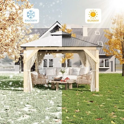 - Spacious Outdoor Gathering Space:This solid wood gazebo provides generous room for you and your guests to move freely and enjoy outdoor gatherings without feeling cramped. Its open design makes it ideal for hosting parties, family events, or relaxing patio time. Create lasting memories in a stylish and functional outdoor space that enhances any backyard setting.