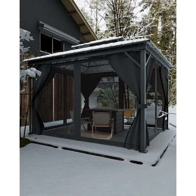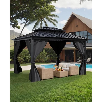 10×14 Ft Hardtop Gazebos with Heavy Duty Double Roof, Nettings and Curtains Galvanized Steel Outdoor Gazebos for Patio, Backyard, Deck, Lawn