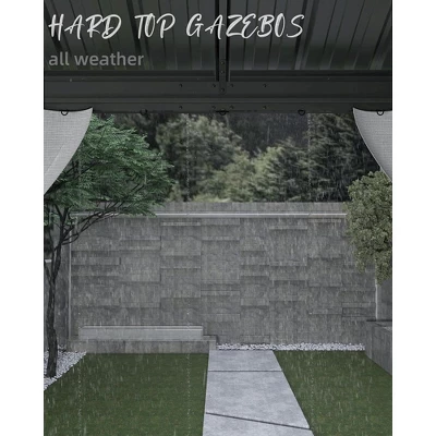 - 【Sturdy Aluminum Frame】Our outdoor hardtop gazebo is made of powder-coated aluminum frame, corrosion-resistant, rust-resistant, and fade-resistant. With holes and ground stakes at the feet, it requires the installation of ground nails or expansion screws to reinforce the pavilion for increased stability.