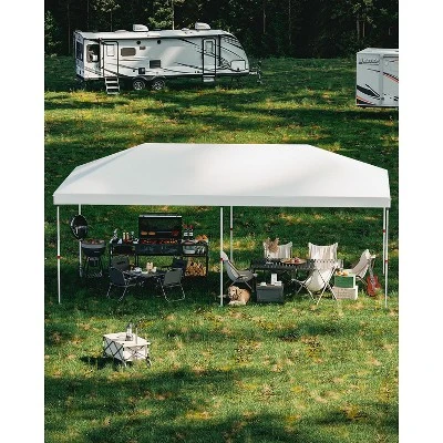 Product DescriptionIntroducing our 10×20 ft Pop-Up Canopy Tent, designed for effortless setup and takedown, making it the perfect companion for all your outdoor activities. In just a few minutes, and with the help of one or two people, you can have your canopy ready without any tools. Simply remove the fully assembled frame and top from the bag, pull it open, drape the fabric over the frame, extend the legs, and you’re ready to enjoy your event!Constructed with premium 210D Oxford fabric and rust-resistant metal trusses, this pop-up canopy offers unparalleled durability. It effectively blocks 98% of harmful UV rays, ensuring you and your guests stay protected from the sun while enjoying outdoor activities.Storage and portability are made easy with the included roller bag. The canopy folds down conveniently, saving space and ensuring you can take it anywhere with ease.Our versatile 10×20 pop-up canopy allows for adjustable side walls, making it adaptable to a variety of usage scenarios—perfect for camping trips, trade shows, picnics, gatherings, barbecues, sports events, arts and crafts fairs, and much more.The complete package includes everything you need for a successful setup: 1 sturdy steel frame, 1 durable canopy top, 4 guy ropes for added stability, 6 empty sandbags to weigh it down, 8 spikes for securing it to the ground, and 1 newly-designed storage wheel bag for convenience.We pride ourselves on excellent after-sales service. Should this canopy not meet your outdoor needs or if you have any questions, our dedicated support team is here to assist you, ensuring your experience is smooth and satisfying.Make your outdoor experiences enjoyable and stress-free with our 10×20 ft Pop-Up Canopy Tent—your go-to solution for shade and shelter!