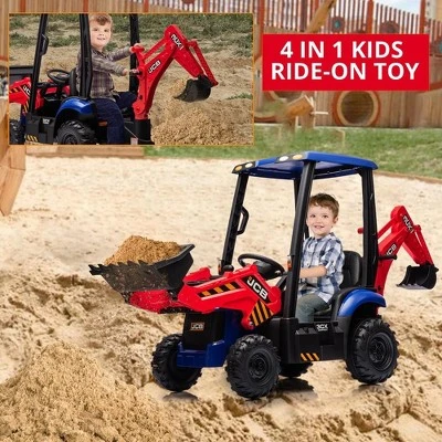 Official JCB Ride-On Excavator (4-in-1 Convertible)This professional-grade digger delivers construction site realism with:✓ Convertible design (Excavator/Dozer/Tent modes)✓ Dual 25W motors (2-4mph) with 3-speed remote control✓ Authentic attachments – dig bucket & grader blade✓ EVA shock-absorbing wheels for rough terrain✓ 60-120 min runtime per chargeASTM/CPSIA certified for ages 3-7 (66lb capacity).