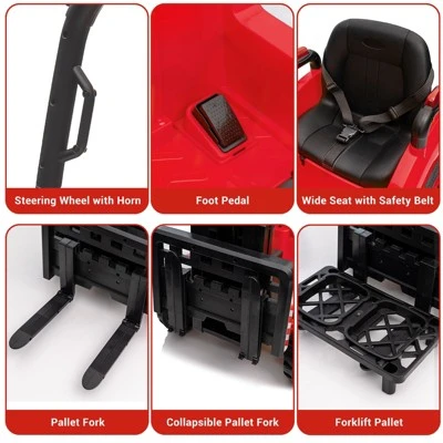 - Realistic Design: The 12V Electric Forklift boasts a liftable fork and removable pallet, allowing children to control the arm fork movement through the right control stick. With this feature, kids can enjoy the sensation of being a real forklift operator, providing them with a lifelike and engaging driving experience that sparks their imagination and creativity.
