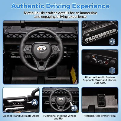 - 【 Multi-Function Dashboard】 This kids’ electric vehicles integrates music, USB, MP3, story playback, and Bluetooth connectivity, providing a variety of entertainment options for children