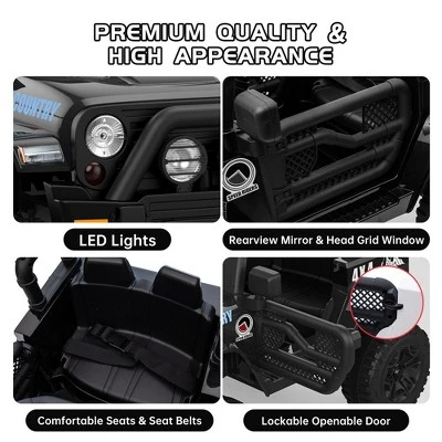 - 【Realistic Driving Action】Perfectly sized controller for little hands, powered by a 12V battery that runs up to 2 hours on a full charge. Features adjustable seat belts, LED lights, lockable doors, and a mesh windshield for a grown-up driving experience.