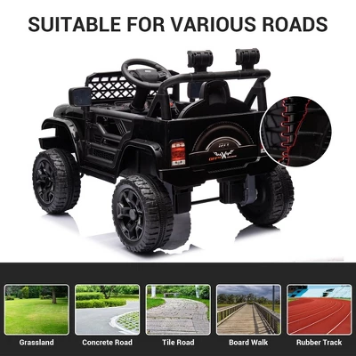12V Ride On Car for Kids Electric Vehicle Toddles Battery Powered Truck Car Toy with Remote Control, 4-Wheel Suspension, Battery Display, LED Lights, Music, for Boys Girls