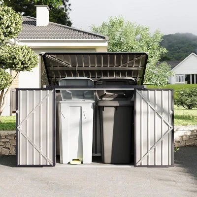 - REFINED MATERIAL & SOLID STRUCTURE – The metal garbage can storage shed, constructed with galvanized steel and coated in black powder, exhibits exceptional sturdiness and durability for long term usage. The superior structural design guarantees the top has an exceptional load bearing capacity, enabling it to withstand winds of up to six levels. This resilient material is resistant to UV rays, ensuring that it will not fade or discolor after prolonged exposure to the sun