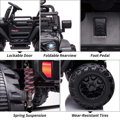 - 🚗Build-in Fun–The ride on vehicle already assembled with MP3, USB port, FM radio, bright LED headlights and Horn, Bluetooth,Bottle Holder to provide much more funny for child. The front storage bin will allow your kids to take toys along with them.