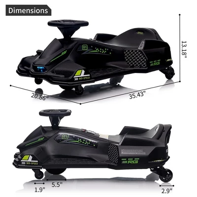- [Best Gift for Kids]– The drift car overall size:35.43″*20.86″*13.18″, Max weight load: 110lbs . Recommended Age: 8 and up. Certified by ASTM,CPC, safety for children.
