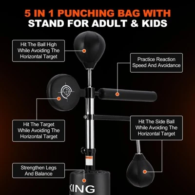 5 in 1 Punching Bag with Stand for Adult Kids, Freestanding Heavy Boxing Bag with 2 Speed Bag, 360¡ã Relax Bar, Hitting Target, Adjustable Height