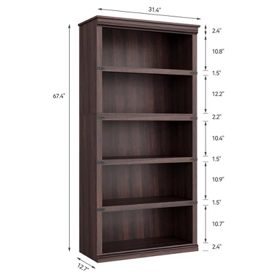 - Colonial Moulding Design: The 5 shelf book shelf features a unique colonial molding design on the top, combined with iron angle-designed wood grain surfaces, adding a touch of rustic charm to the farmhouse look.