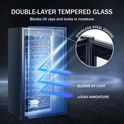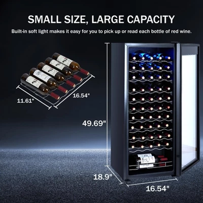 - 🥂【Ample Storage Capacity】This beverage refrigerator boasts the ability to hold up to 55 bottles, making it an ideal choice for wine enthusiasts, beer lovers, and anyone who likes to have a variety of drinks readily available. With adjustable shelving, you can easily customize the interior layout to accommodate different bottle sizes, ensuring optimal organization and accessibility.