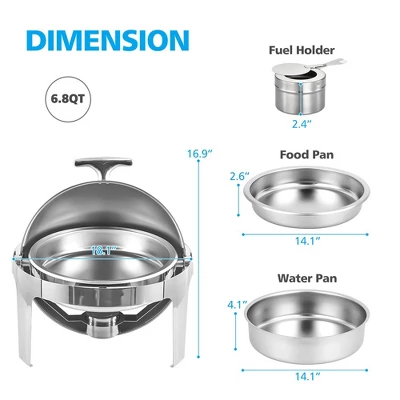 6.8 QT Round Roll Top Chafing Dish Buffet Set, Round Chafing Dishes for Buffet with Fuel Holders and Pan, Stainless Steel Chafers for Catering for Parties, Events