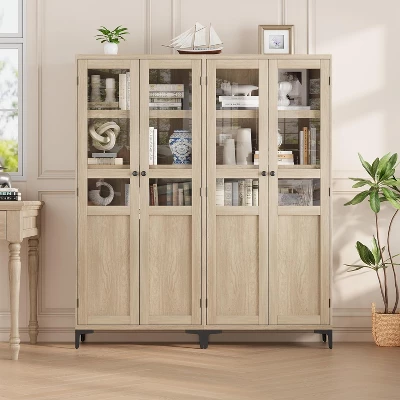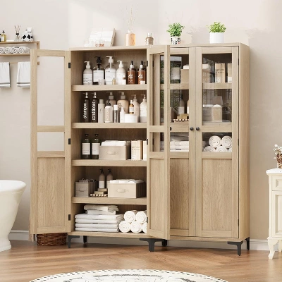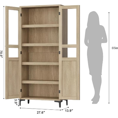 WhizMax 63 Inch Tall Storage Cabinet with Glass Doors, Kitchen Pantry Cabinet 5 Tier Bathroom Cabinet With Doors Adjustable Shelves for Kitchen, Dining Room, Bathroom (Pear Wood, 2 Door with Glass)Product detailsProduct Dimensions: 13.9″D x 27.5″W x 63″HSpecial Feature: Adjustable ShelfMounting Type: Floor Mount
