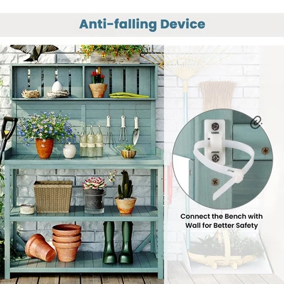 Description:Product NameWooden Potting BenchOverall Product DimensionOverall size: 46.9×19.3x65inch(LXWXH) Each Grid: 22.5×10.2inch(LXW); Tabletop: 46.8×18.5inch(LXW)Overall WeightNet Weight:45.9lbsWeight CapacityTabletop: 44lbs ach Shelf:22lbsMaterial: Fir WoodPieces Included1 Potting Bench+1 Hook PanelColor: Green/NaturalAssembly Required: YesAdditional Tools RequiredAll Tools IncludedProduct WarrantyPlease Read Return PolicyDetail Product DimensionPlease refer to the Size imageNumber of Package: 1Package Dimension and WeightPlease refer to the SpecificationPacking list:Wooden Potting Bench x 1