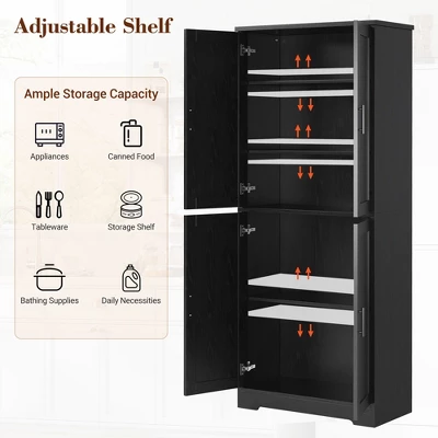 - OPTIMIZE YOUR STORAGE EXPERIENCE: Enjoy well-designed storage that offers lasting functionality. The tall pantry height is tailored for the average adult’s comfort. Oversized coated metal handles provide a comfortable grip and ensure durability. High-quality hinges allow for smooth door operation, perfectly blending style and practicality for a seamless storage experience
