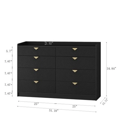 - The bedroom dresser has 8 large drawers, providing ample space for your daily storage. There is plenty of space to organize your books, toys, decorations and other items. The spacious top is perfect for TVs, lamps, glasses, photos, cell phones, plants and more. Keep your room tidy