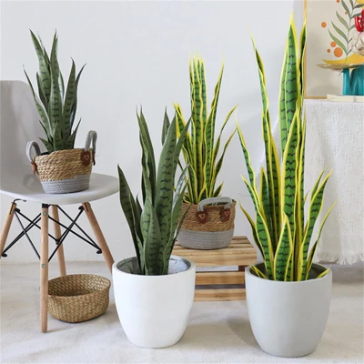 Name: fake snake plantMaterial: Plastic, Soft Rubber, Soft PVC,Size: 40cm/50cm/70cm/90cmPacking list:1 x fake snake plant