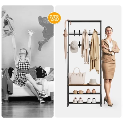 - 3-in-1 Hall Tree: Combining coat hooks, shoe bench and shoe rack, this all-in-one freestanding coat rack offers you convenient storage for your coats, shoes, and on-the-go items and a seat to change shoes.
