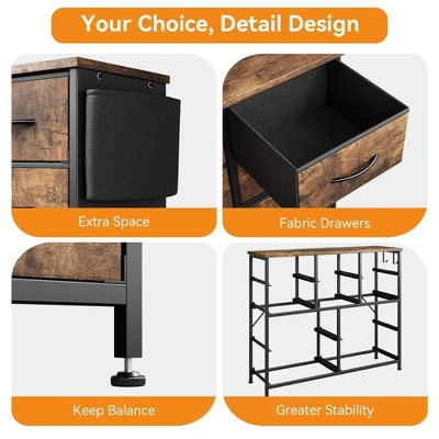 - Sturdy and Enduring: The sturdy steel frame and waterproof wood top ensure years of use. Heavy-duty metal frame with X-frame backing and wall anti-tilt kit enhances the stability of this dresser. Adjustable feet on the bottom can adjust balance, enhance stability, and protect your floor from scratches.