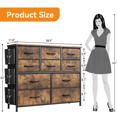 Dresser for Bedroom with 10 Drawers, Dressers & Chest of Drawers, Fabric Storage Drawer with Side Pockets for Kids Room, Closet, Hallway, Entryway, Living Room