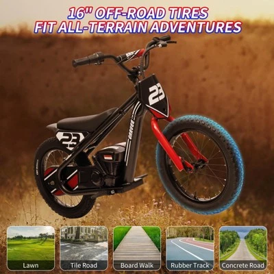 Electric Dirt Bike for Kids, 250W Electric Motorcycle, Electric Balance Bike for Ages 6-12, Up to 15.53MPH & 3 Speed Settings, 24V Detachable Battery, 16IN Off-Road Tires