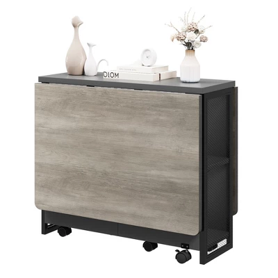Folding Dining Table, Drop Leaf Dining Table with 6 Wheels and 2-Layer Storage Shelf, Space Saving Dining Table