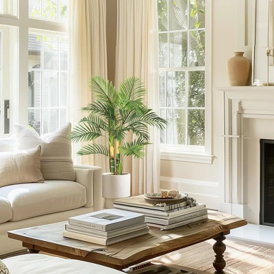 - 🌴【Widely Applicable】This lifelike large artificial golden cane palm Whether placed it on a balcony, by a poolside, or in a garden, our tall fake palm plants endure sunlight exposure, ensuring long-lasting visual appeal in any outdoor setting.It is ideal for decorating your living room, bedroom, reading room, dinning room and office, also great for entryway, patio and commercial places such as bookstores and coffee shops.