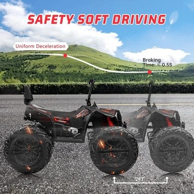 - 🚗【Realistic Driving Experience】 GAOMON ride on ATV equiped a accelerator handle and brake pedal to enjoy the real driving. Providing low & high speed modes, gives your kids the best experience. In addition, the customized soft braking system ensure the driving safety and virtually no impact on the driver during emergency braking.