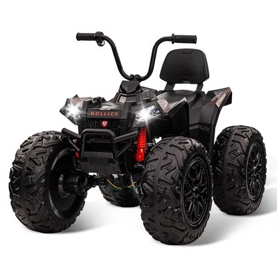 24V 4WD Kids ATV with Dual BatteriesThis high-performance electric quad delivers thrilling off-road adventures with:✓ 4x80W motors (true 4WD) for rugged terrain✓ Dual 7AH batteries for extended 90-minute runtime✓ Full-metal suspension + 12″ EVA tires✓ Bluetooth speakers & LED light system✓ Handlebar accelerator with safety keySupports riders up to 120lbs (ages 6-12). Perfect for trails and backyard exploration.