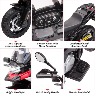 - 【Ride with Entertainment】: Equipped with LED headlights, a USB port, MP3 player, and music, this Kids Motorcycle offers endless entertainment, lighting up every ride with joy and excitement.