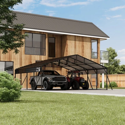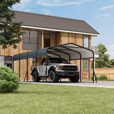 UPGRADED AND ENHANCED BASE – To guarantee stability, the metal carport is furnished with heavy-duty anchor rods and offers 6 reinforcing support rods that can be installed on various surfaces, ensuring remarkable stability and durability even in adverse weather. The car port metal roof is made of galvanized steel, which is rust-resistant and highly durable. The upgraded sloping canopy facilitates rapid water drainage. WEATHER RESISTANCE – This tall metal carport features industrial-grade steel brackets and a highly corrosion-resistant galvanized steel roof. Ingeniously designed to withstand rain, snow, and wind. Waterproof sealing tape on the roof seams prevents water seepage in rainy days and provides exceptional protection. A soft-edged rubber strip around the roof edge reduces the risk of cuts and enhances material longevity. Wind Rating: 100 MPH; Snow Load Capacity: 35 PSF. UPGRADE STURDY FRAME – Distinct from traditional canvas carports, this upgraded 12’x24′ metal carport showcases a galvanized steel roof and a powder-coated steel frame. Its upgraded frame structure has undergone rigorous testing over 1000 times, offering a 35% improvement in installation ease and stability compared to others. DIMENSIONS – The outer dimensions of the outdoor metal carport heavy duty car canopy are: 12′ wide, 24′ deep, and 8.5′ high. The inner measurements of the outdoor large metal carport canopy are: 145.7” wide, 287” deep, and 102.4” high. The eave height is 85”, and the maximum entrance height is 102.4”. Note that the product will be divided into 4 packages, which might not arrive simultaneously. Following the instructions eases the garage assembly. Contact us for any product issues. MULTI-USE METAL CARPORT – The outdoor metal carport with heavy duty galvanized canopy garage car shelter offers ample space for vehicles and trucks. It can serve as a carport canopy and a shelter for outdoor activities like parties, weddings, and trade shows. The gray finish adds an elegant and stylish charm to your backyard. Customize your outdoor life now!