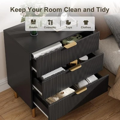 - Simple and stylish design: Featuring a sleek vertical stripe exterior, our modern wood 3 drawer dresser boasts a simple yet modern aesthetic. This versatile design effortlessly complements various interior decor styles, enhancing the visual appeal of any room while maintaining a clean, uncluttered look.