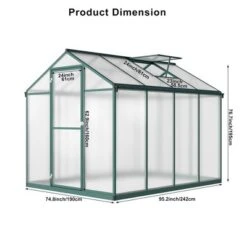 6×8 FT Greenhouse For Outdoors, Polycarbonate Greenhouse With Quick Setup Structure And Roof Vent