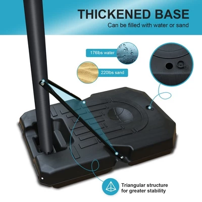 - 【Stable Base】The large base is equipped with 2 sand or water inlets, making the basketball system more stable than other systems, ensuring good stability and safety for every shot.