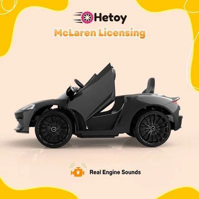 - COOL DESIGN: Officially licensed, this McLaren ride-on car has LED headlights, horn and engine sounds, and hydraulic powered doors that swing open just like the real McLaren.