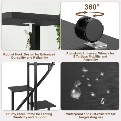 - Ample Storage Space: With 6 tiers, 12 pot stands, and 6 hanging hooks, this 68″ plant stand offers generous storage for plants, books, collectibles, and more, enhancing your living area.