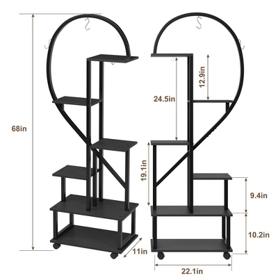 Set of 2 Metal 6-Tier Tall Plant Stands with Detachable Wheels and Drawers, Half Heart Shape Design for Indoor/Outdoor Home, Garden, Patio, Balcony Display