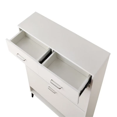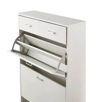 Shoe Cabinet, Freestanding Tipping Bucket Shoe Rack Organizer with 2 Flip Drawers & 2 Drawer, Modern Shoe Storage Cabinet for Entryway Hallway Bedroom