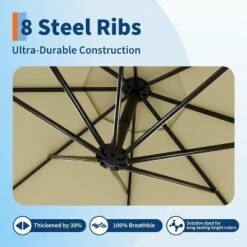 10FT Offset Cantilever Umbrella – 8-Rib Sun Shade, Push Button Tilt & Waterproof UV Protection