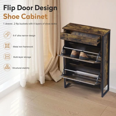 - Flip Drawers Design: This shoe cabinet incorporates a unique flip bucket design, with each bucket offering 2 layers of storage, allowing it to accommodate 8-10 pairs of shoes effortlessly.