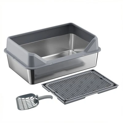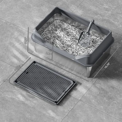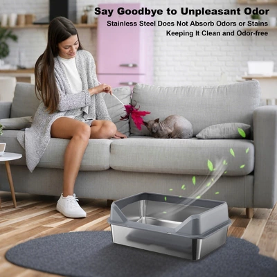 Stainless Steel Cat Litter Box, With High Sides, 4 Silent Anti-slip Pads, Double Layer Litter Mat And Scoop, Easy Clean, Large Enclosure Litter Box