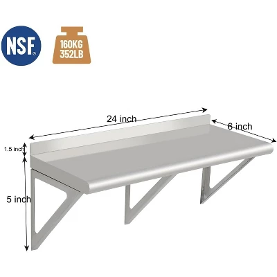 - STAINLESS STEEL: Constructed from 18 gauge Type 430 stainless steel, this wall-mounted shelf satisfies strict public health norms and regulations thanks to its NSF certification.The surface of the food-grade stainless steel is smooth and flat, making it simple to clean and sanitize.