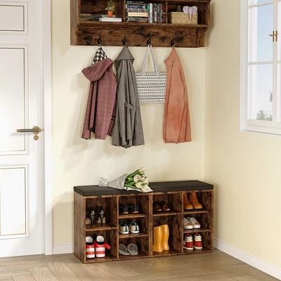 - 【Multifunctional Shoe Bench】Comes with 10 cubbies to store 10 pairs of shoes up to size 44,for your flat shoes, sports shoes, slippers, high heels, rain boots, martin boots, ;spacious storage space is ideal for entry porch, front door, living room, bedroom, garage closet,and more;use it as a window seat or bed-end stool for storing blankets, books and toys.