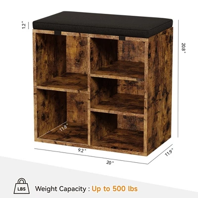 - 【Adjustable Shelves for Multiple Needs】6 fixed-size compartments in the center to store flats, sneakers, slippers, high heels, The dividers on both sides of the shoe bench can be adjusted to different heights to accommodate shoes of different heights;provide more shoe storage options for different sized shoes.